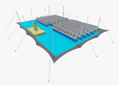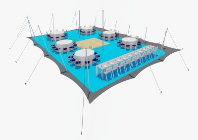 The tent can be set up for a variety of seating arrangements including a formal seated dinner or theatre style, as a standing event to maximise capacity (such as a cocktail bar) or with a cinema or business seminar layout.