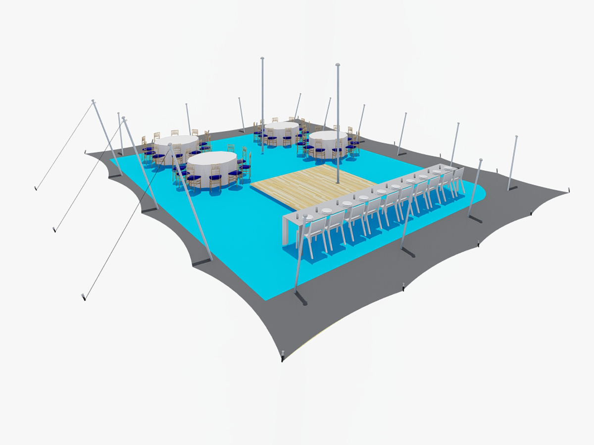 The high-quality and durable nature of the material means the stretch tents are reliable under any weather conditions, giving you piece of mind through wind, rain or shine. The dynamic stretch of these tents allows our team to create bespoke tent installations, tailored perfectly to your event.